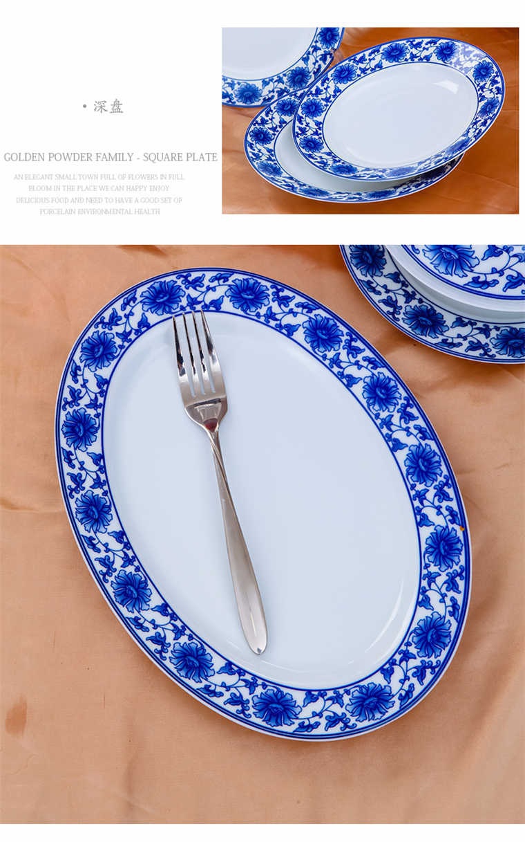 68頭高白青花瓷,一個湯煲,一個魚盤,一個10寸圓盤,一個大馬戈,一個煙缸,一個牙簽筒,兩個醬醋瓶,十個4.5寸碗,十六個8寸碟,四個蓋碗,十個小馬戈,十個5寸骨碟,十個水杯。