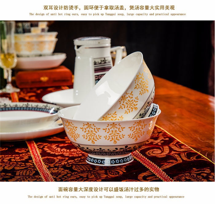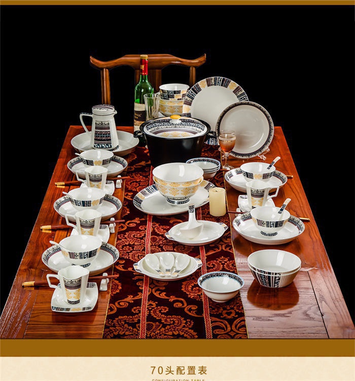72頭傳奇餐具,餐具60頭 ,一個湯煲,一個魚盤,一個十寸圓盤,一個牙簽筒,一個花籃,一個大飯勺,兩個調(diào)料壺,兩個蓋碗,四個碗,十個4.5寸飯碗,十個4寸湯碗,十個8寸盤,十個調(diào)羹,十個筷子架,
