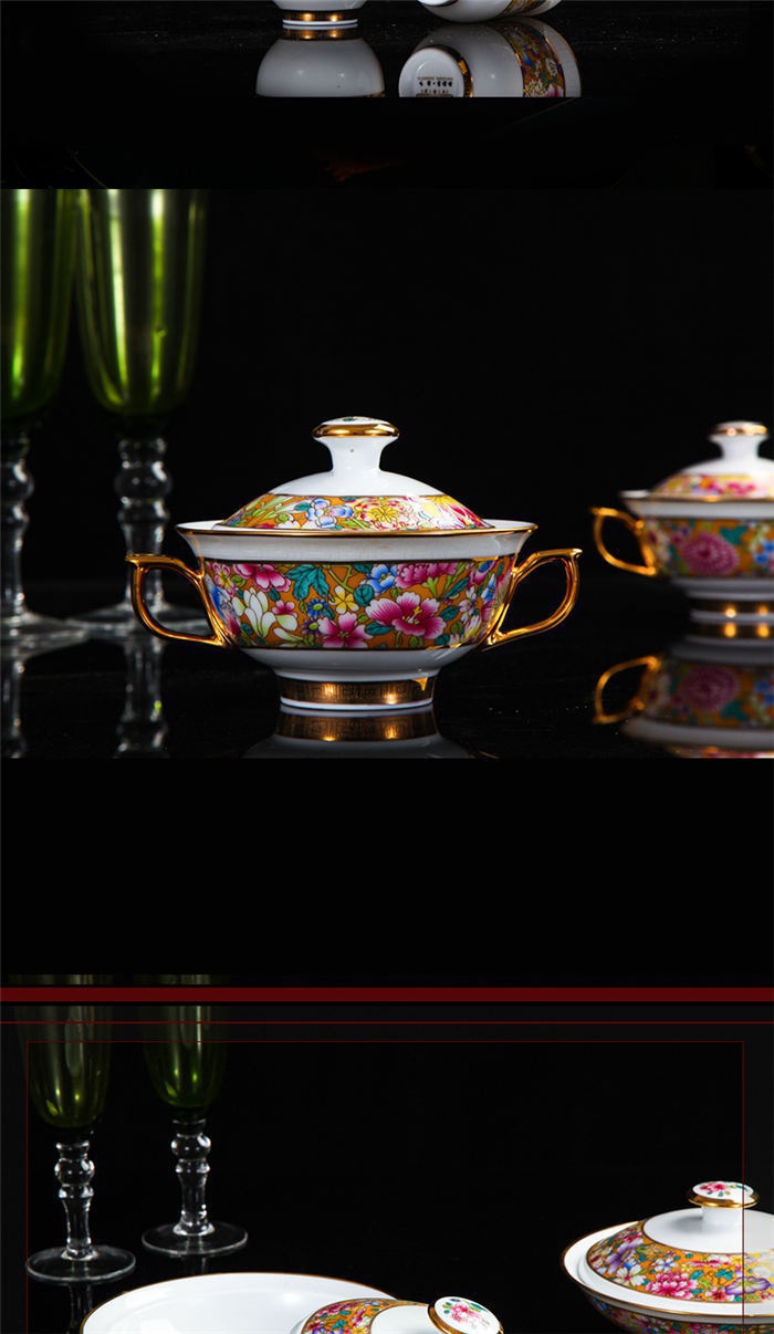 碗十個,水杯十個,盤子八個,小勺十個,筷子架十個,魚盤一個,面碗二個,飯勺一個,湯煲一個,和合器二個,骨碟十個,大湯碗一個,咖啡杯二個。